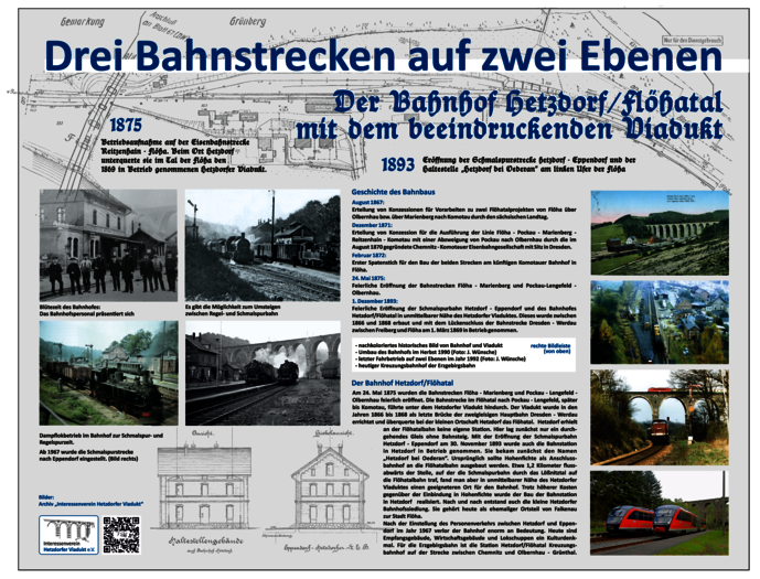 Ausführlicher Informationen zum Hetzdorfer Viadukt und seiner Umgebung findet man über die folgenden Links zu dem vom Interessenverein Hetzdorfer Viadukt e.V. herausgegebenen Info-Flyer und zur Broschüre, erschienen aus Anlass „150 Jahre Inbetriebnahme des Hetzdorfer Viadukts“. Außerdem werden die beiden Info-Tafeln an der Vereinshütte des Interessenvereins und am Bahnhof Hetzdorf/Flöhatal dokumentiert.