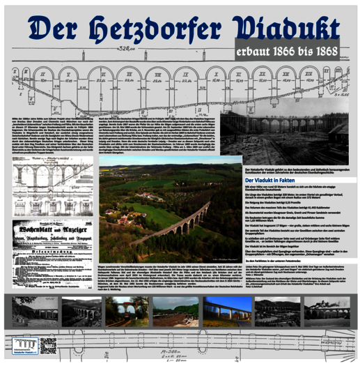 Ausführlicher Informationen zum Hetzdorfer Viadukt und seiner Umgebung findet man über die folgenden Links zu dem vom Interessenverein Hetzdorfer Viadukt e.V. herausgegebenen Info-Flyer und zur Broschüre, erschienen aus Anlass „150 Jahre Inbetriebnahme des Hetzdorfer Viadukts“. Außerdem werden die beiden Info-Tafeln an der Vereinshütte des Interessenvereins und am Bahnhof Hetzdorf/Flöhatal dokumentiert.